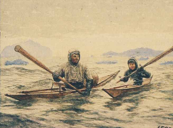BATEAU  EMBARCATION  EAU  RIVIÈRE  TORRENT  RAMER  INUIT  ESQUIMAU  PIROGUE