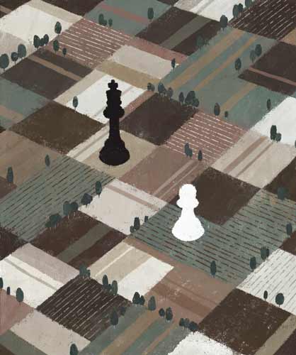 D'où vient le jeu d'échec?… de l'Inde ! Nous distinguons, pour l'interprétation, les pièces du damier. Symboliquement, le damier représente, par sa construction carrée, le monde, la Terre. Les pièces, elles, figurent à la fois les hommes qui marchent sur la terre et les aléas auxquels ils sont soumis comme les relations qu'ils entretiennent entre eux. La Terre étant un monde où s'exprime la dualité, les rapports ou contacts des uns et des autres sont d'abord des conflits. L'échiquier dans son ensemble représente "le bas-monde, et tous les mouvements qui élèvent certains et abaissent d'autres, là où l'on vit, là où l'on meurt. Il figure les guerres et les conflits, les oppositions, les troubles, les richesses et la pauvreté" - Al-Nâboulsi. Le jeu d'échecs demande le dépassement des forces instinctives et primaires, pour une élévation de l'esprit. Dans les langues celtes, le jeu d'échecs signifie "Intelligence du bois". Les traditions ont choisi le carré comme représentation symbolique de la Terre, parce qu'il offre une assise, une stabilité, une fixation à partir de laquelle les choses peuvent s'étendre ou s'élever, ou les deux, s'étendre ET s'élever. Le damier un ensemble tissé, noir et blanc, rappelle les forces antagonistes terrestres, la loi des contraires, avec lesquels l'homme a à se débattre. Il est composé de 64 cases carrées, (64 ou 8 X 8, le chiffre de l'aboutissement, de l'accomplissement spirituel à partir des données terrestres, dont la principale est la dualité). Les pièces sont les atouts ou les outils donnés à l'homme pour qu'il se réalise plus ou moins habilement, plus ou moins savamment. Durant tout son parcours terrestre, il apprend à se confronter avec la puissance des contraires, la nature duelle (la sienne et celle des autres), signifiées par le déplacement des pièces. C'est justement l'enjeu : le dépassement des forces primitives, instinctuelles, par le développement et la maîtrise de son esprit, du mental. Le jeu d'échec était réservé autrefois aux rois, aux gouvernants du monde, qui savaient que chaque acte engendre une conséquence, que chaque pensée a une incidence sur les habitudes de vie et inversement chaque habitude influe sur son mode de pensée. L'enjeu des parties était de taille puisqu'il permettait d'éviter une guerre. |
