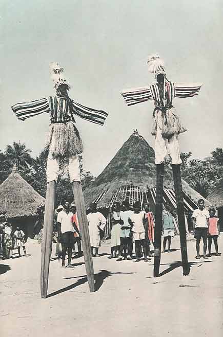 Des danses rituelles sur échasses existent dans le pays mandingue - Mali-Côte d'Ivoire - et autrefois ont existé dans la Chine antique. Les danseurs sont appelés échassiers.