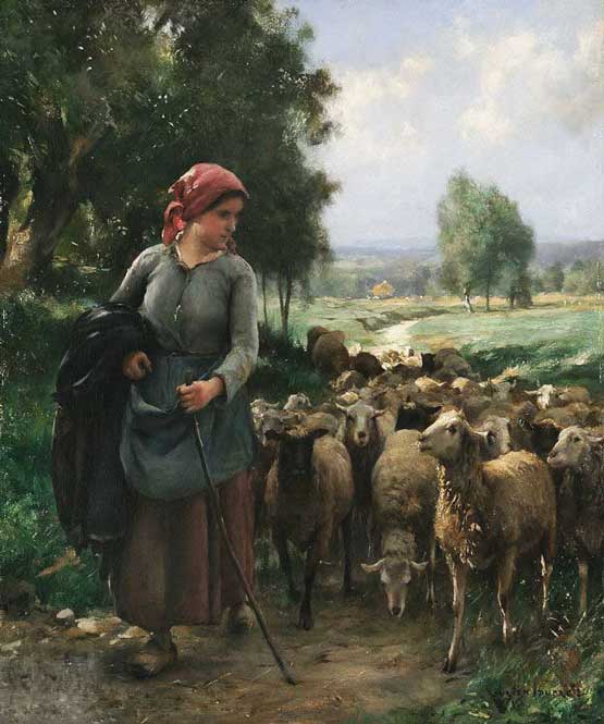 "Il pleut, il pleut, bergère, rentre tes blancs moutons…" chantonnait ma Grande Tante. La bergère, bien avant le christianisme "Yahvé est mon berger, sur les prés d'herbes fraîches, il me parque, près de lui rien ne me manque….", figure symboliquement la sécurité, la protection contre les aléas de la vie, la foi. Elle est de fait de bon augure dans les songes.
